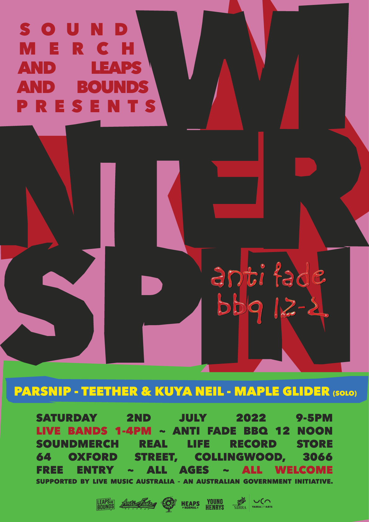 Winter Spin Yarra’s Winter Record Store Party Hot off the heels of the 15th birthday celebrations of Record Store Day, Leaps and Bounds Music Festival gives you another chance to party across Yarra’s record stores.